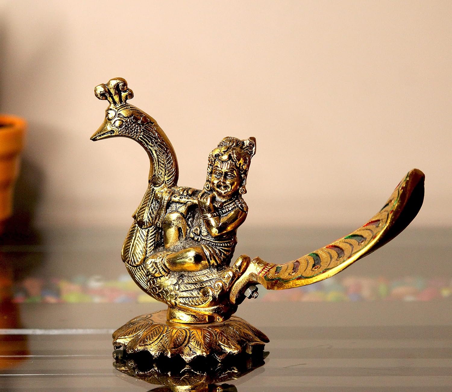 Laddu Gopal Playing Basuri On Peacock Decorative Showpiece