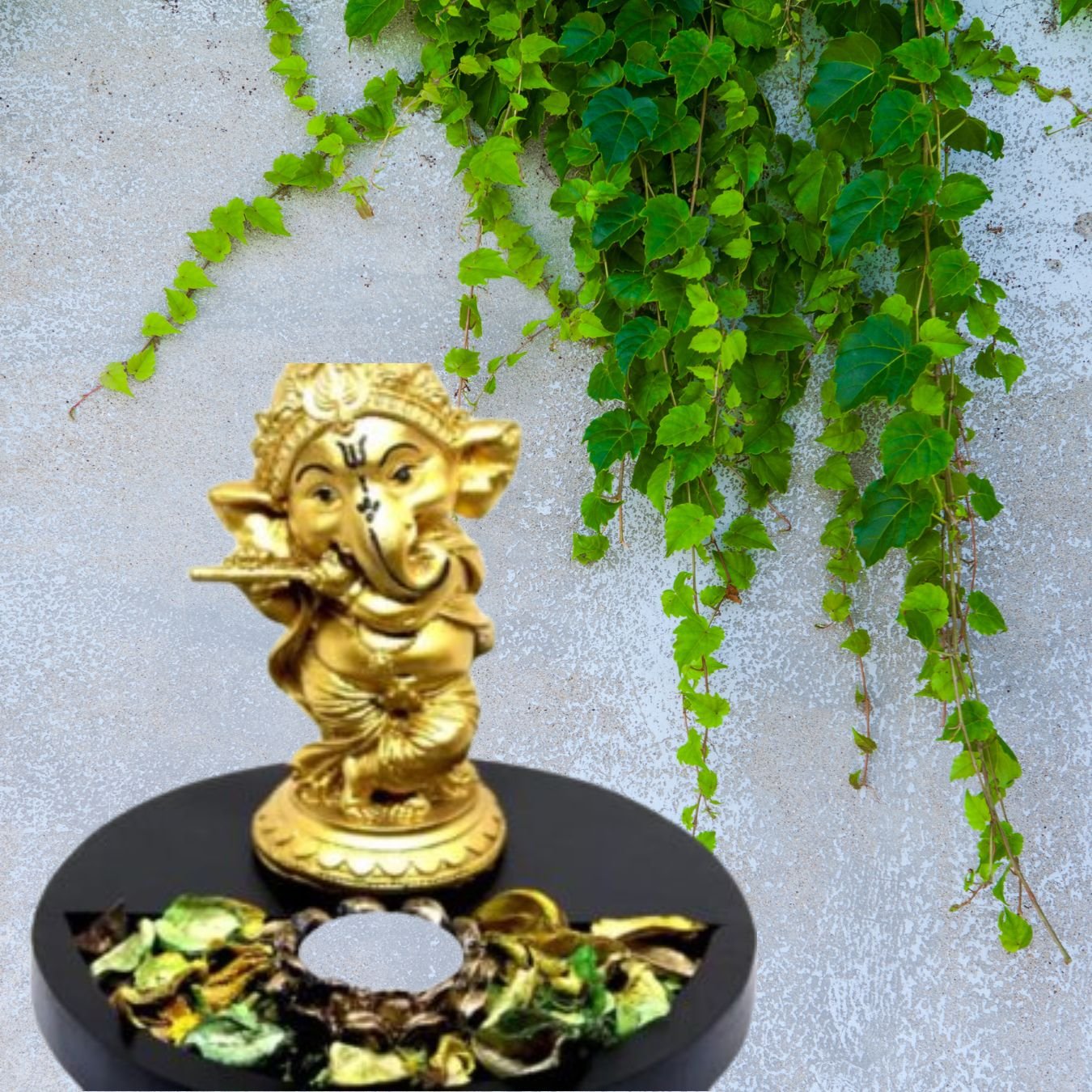 The tealight holder adds a warm, serene glow that enhances the spiritual ambiance, making it a perfect addition to your living room, puja space, or meditation area. The sturdy wooden base provides stability and a touch of rustic charm, ensuring durability while maintaining its aesthetic appeal.Ideal for home decor, puja rooms, or festive celebrations, this showpiece combines functionality with spiritual elegance. It also makes for a thoughtful and meaningful gift for housewarmings, Diwali, and other auspicious occasions.