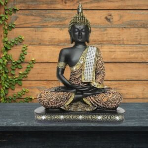Meditating Sitting Buddha Statue Showpiece Idol – Home Decor Item for Living Room & Gifts (1, Orange Black)