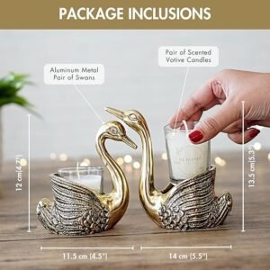 Pair of Swan Candle Holder & Candles Combo Gift Hamper, Festive Gifting Showpiece for Valentine’s Day